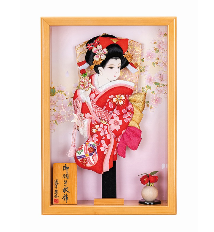 羽子板は昔、羽根突き用のものと、飾り用のものに分かれていました。羽根をつく羽子板は、板の上に梅の枝などを描いたり、左義長(宮中の正月の儀式で魔を払う行事)を描いたものでした。 お正月に羽子板を飾る風習や、女の子の初正月に羽子板を贈る習わしには、邪気をはね(羽根)のけて健やかに育つようにとの願いが込められています。