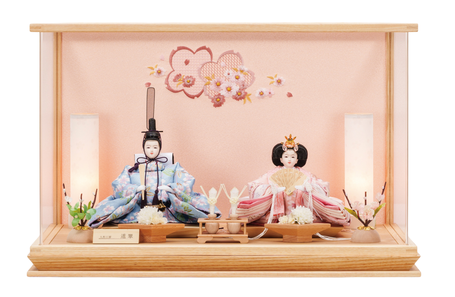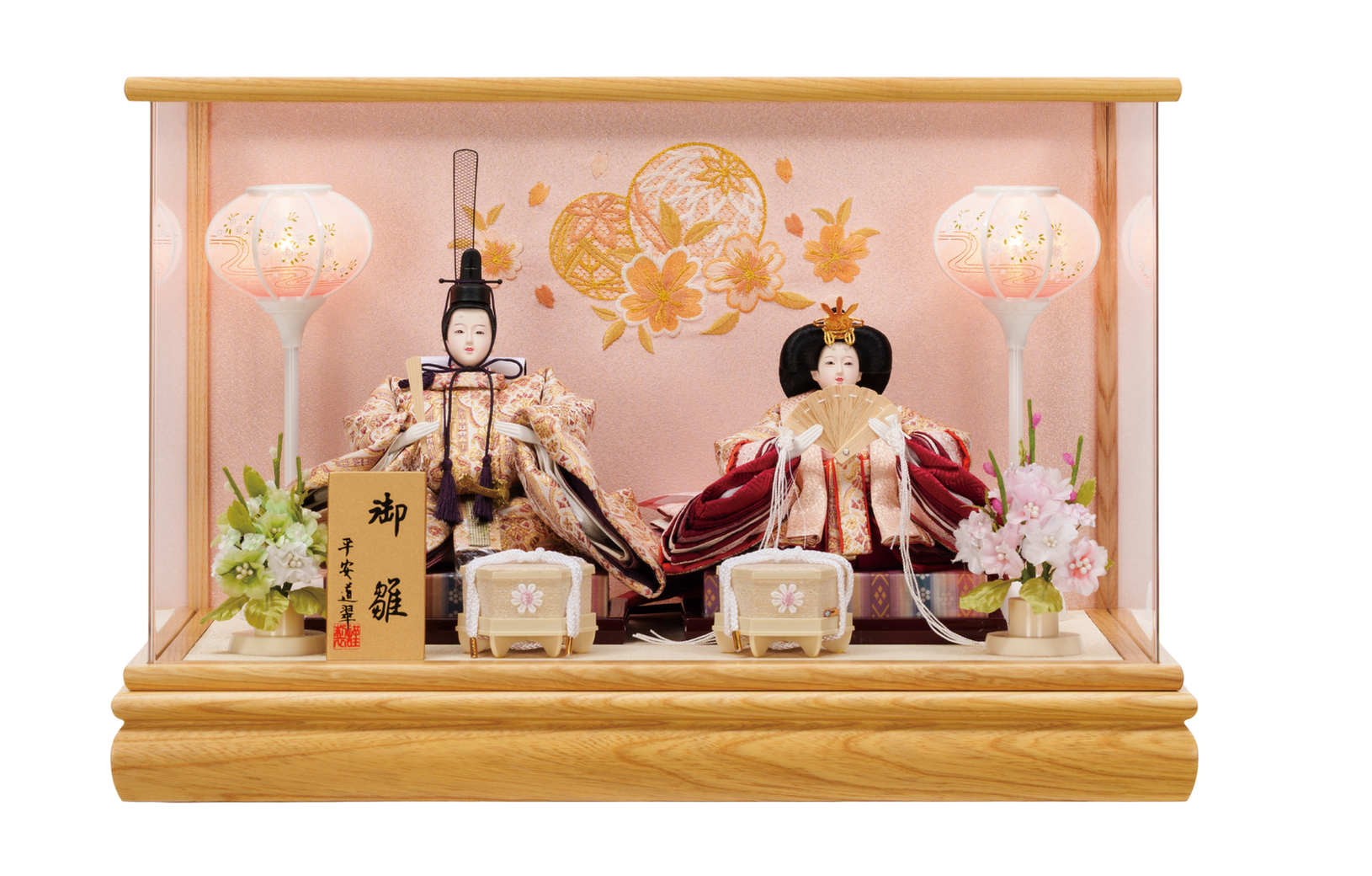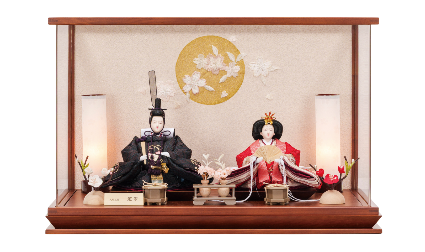 ケースに入っており、人形・道具が 固定されている飾りです。