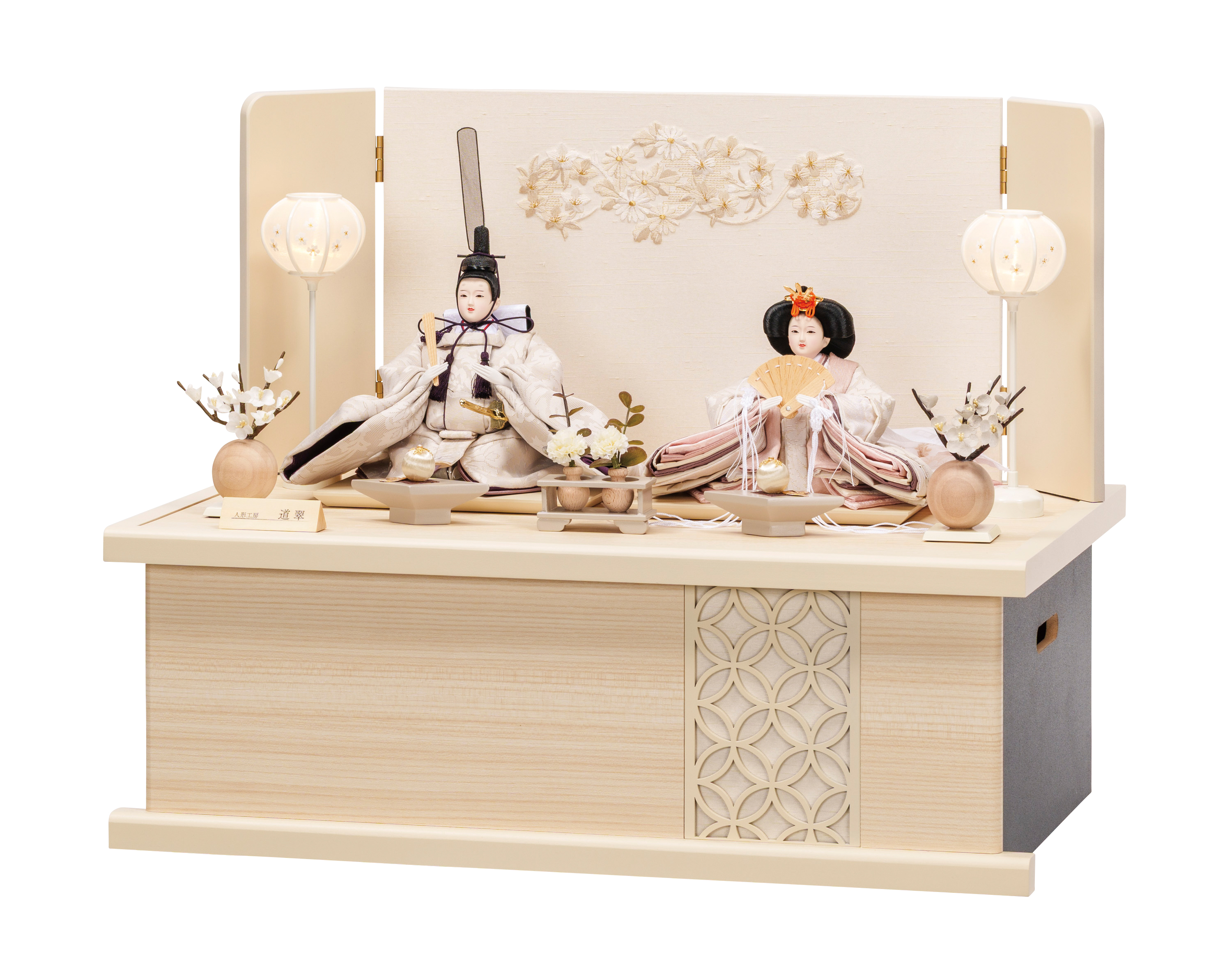 ●裂地/ロイヤルジャガード ●屏風/京刺繍 ●こだわり/刺繍裳袴 ●収納箱タイプ